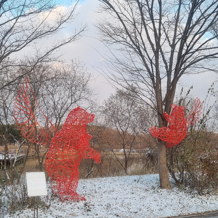 야외 공간에서 유명 작가들의 예술 조형물을 감상할 수 있어요